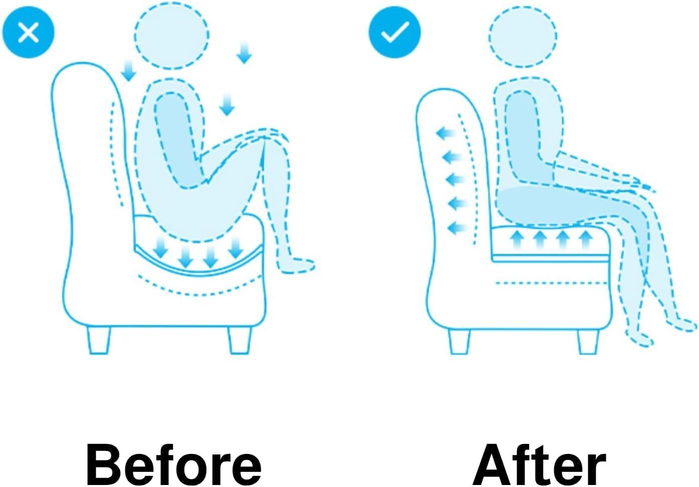 - Ergonomic Benefits: Helps you sit higher and straighter, reducing back strain caused by sagging cushions and improving posture comfort.